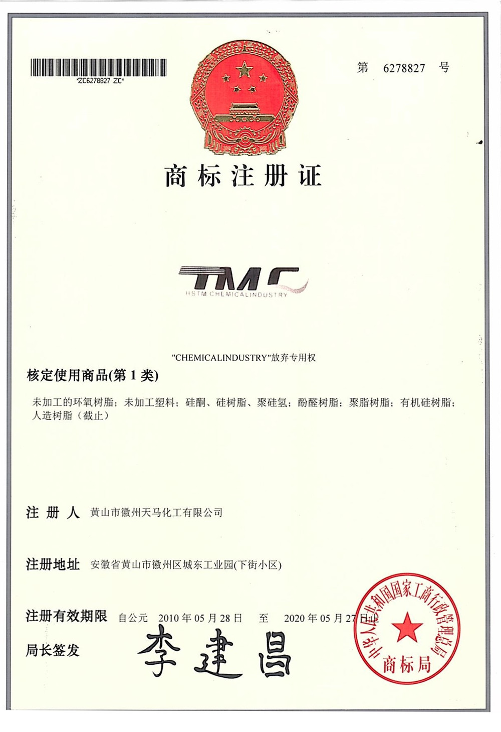 2010年注冊(cè)天馬TMC商標(biāo)