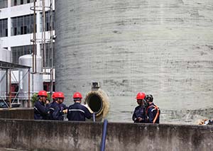 演練分兩個(gè)部分進(jìn)行:第一部分是“有限空間安全作業(yè)的規(guī)范流程”演練。第二部分是“有限空間安全作業(yè)突發(fā)安全事故的應(yīng)急救援演練”。